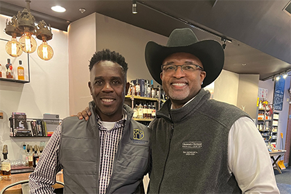 Gary Scott (right), who recently moved to Vermont from Texas for a job with the UVM Health Network, with Tino Rutanhira at a BIPOC social gathering organized by VtPOC in Burlington (Photo courtesy of Gary Scott)